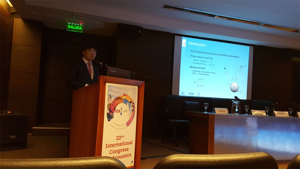 newsPaper presentation at the 22nd International Congress on Acoustics (ICA 2016) (by Byeongho Jo) Paper: Byeongho Jo and Jung-Woo Choi, " Spherical harmonic smoothing technique for DOA estimation of fully coherent sources ," in Proc. of the 22nd International Congress on Acoustics (ICA 2016), Buenos Aires, Argentina, paper 731, September 5-9, 2016