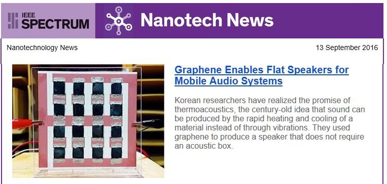 mediaOur recent work on 3D graphene aerogel is introduced by several media. [ACS weekly news] Bringing graphene speakers to the mobile market [IEEE Spectrum Magazine] Graphene Enables Flat Speakers for Mobile Audio Systems [Gizmodo UK] Make Some Noise for Graphene Aerogel Speakers